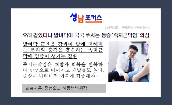 족부질환 [성남포커스] 오래 걸었더니 발바닥이 쿡쿡 쑤시는 통증 '족저근막염'