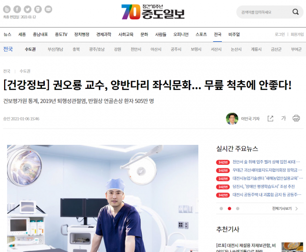 [중도일보] [건강정보] 권오룡 교수, 양반다리 좌식문화...