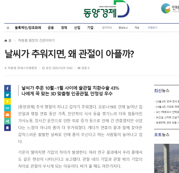 [동양경제] 날씨가 추워지면, 왜 관절이 아플까?